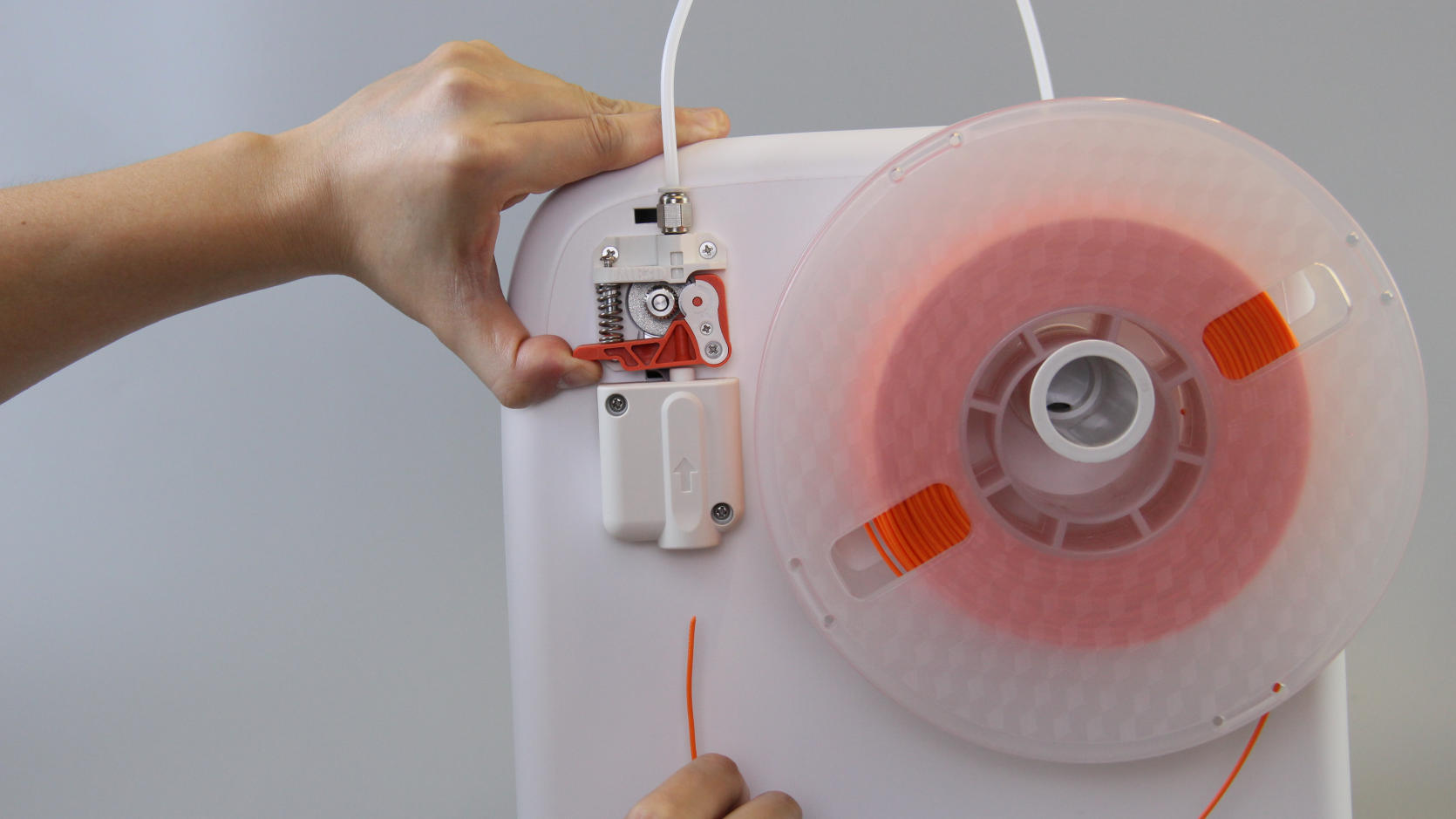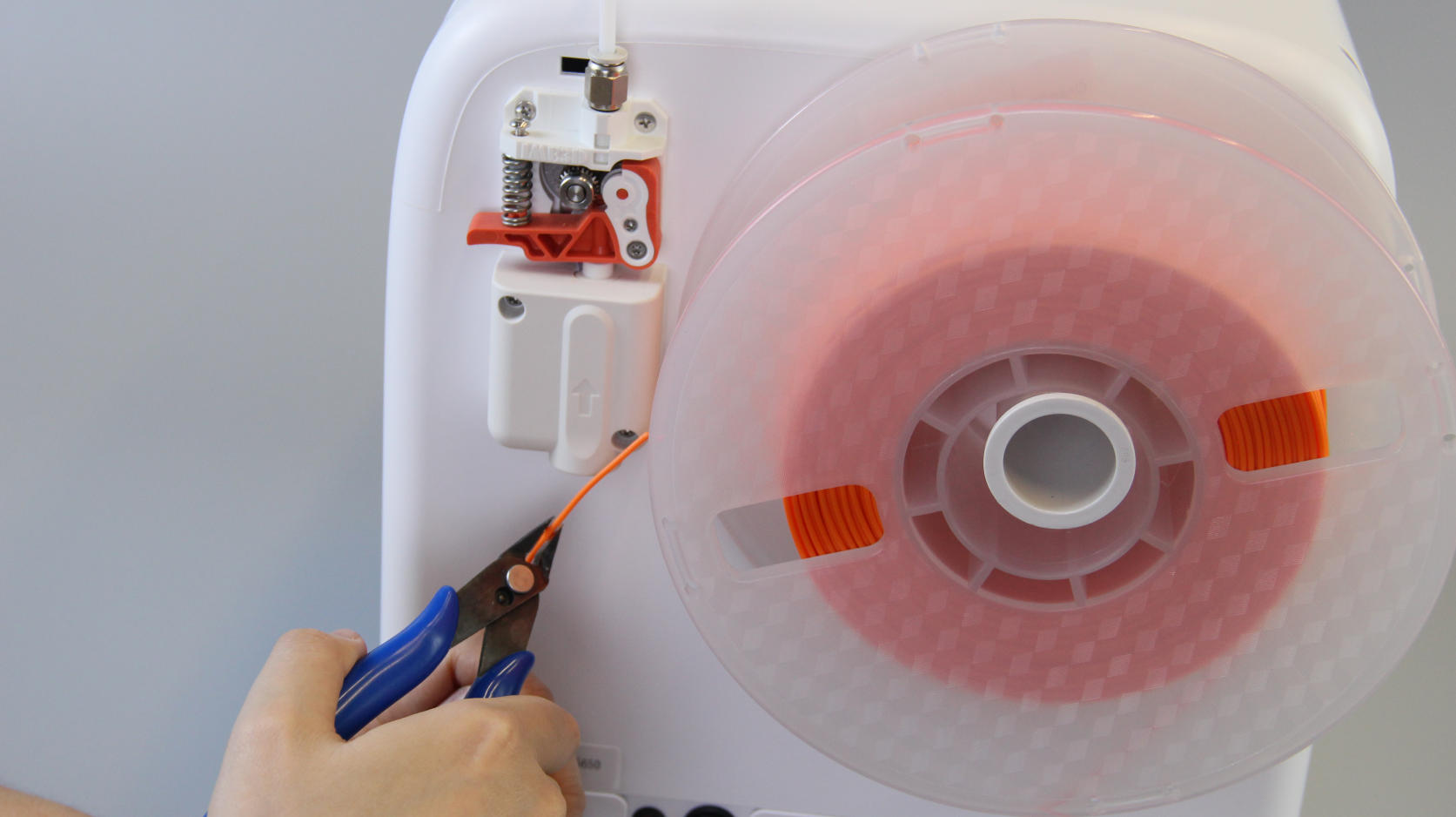 | 1. After the filament passes through the extruder, it is not inserted into the PTFE tube. | 2. Pull the filament out. | 3. Cut the tip at an opposite angle. |