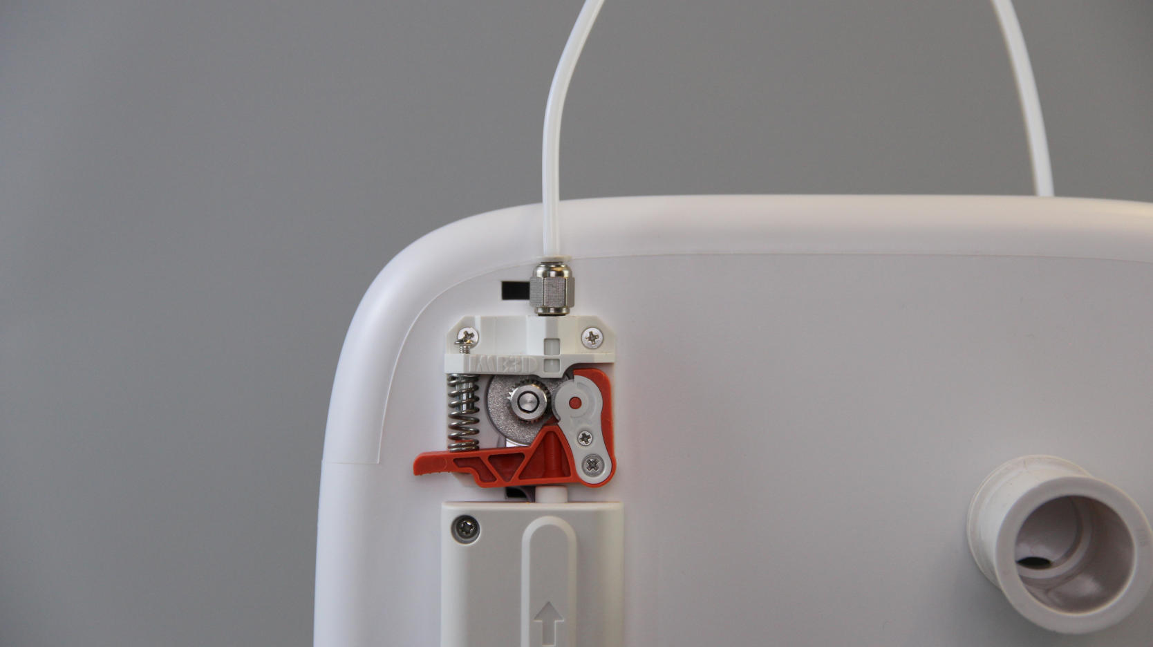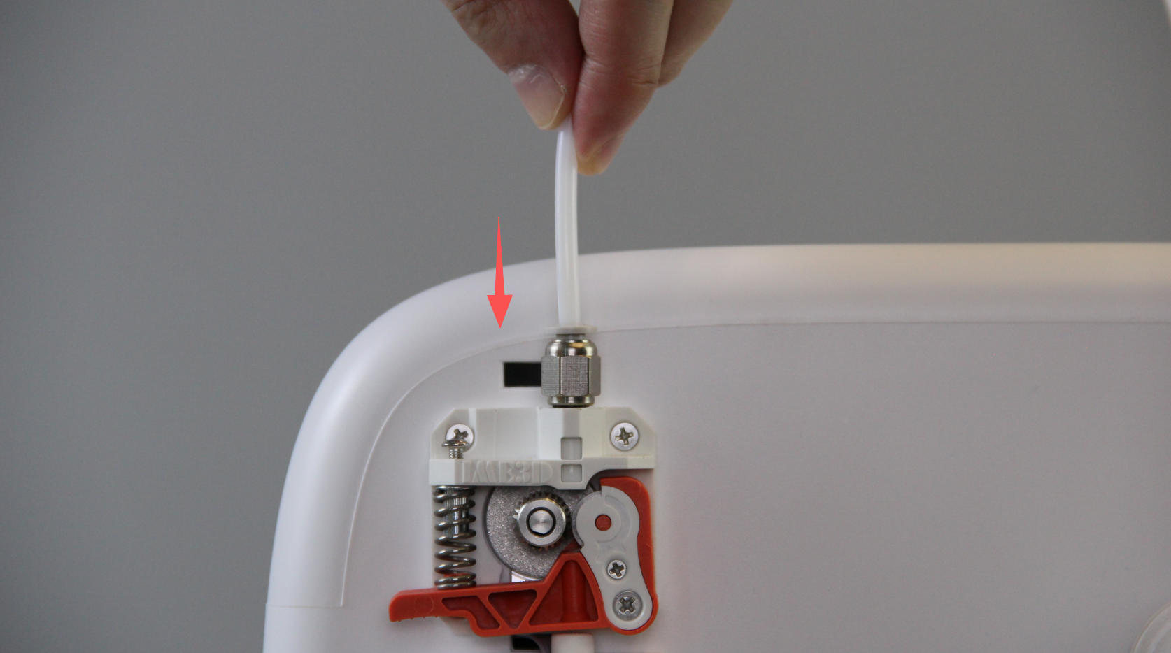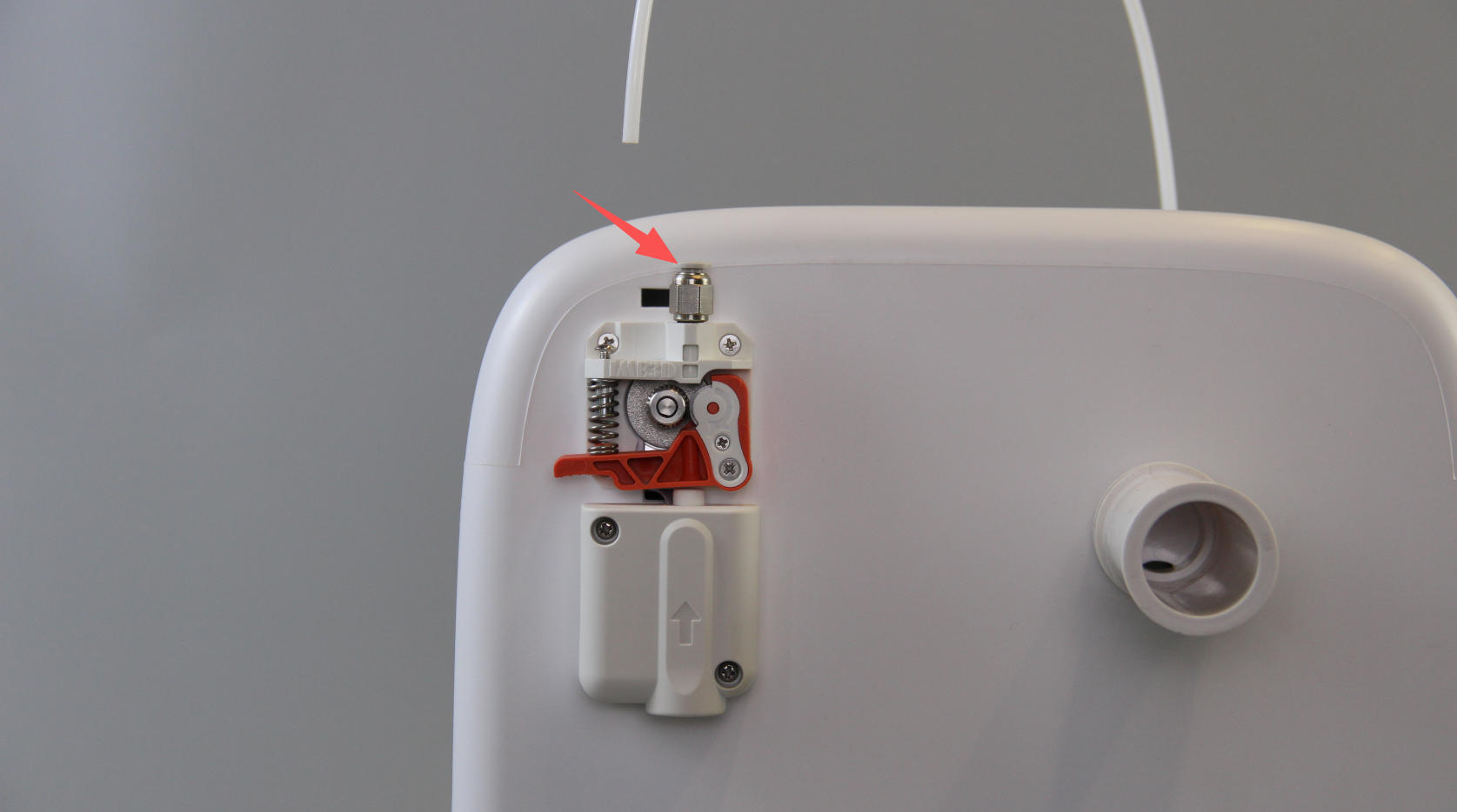 | 4. Remove the old fitting. | 5. Screw in the new fitting clockwise. | 6. Insert the PTFE tube all the way into the new fitting. |