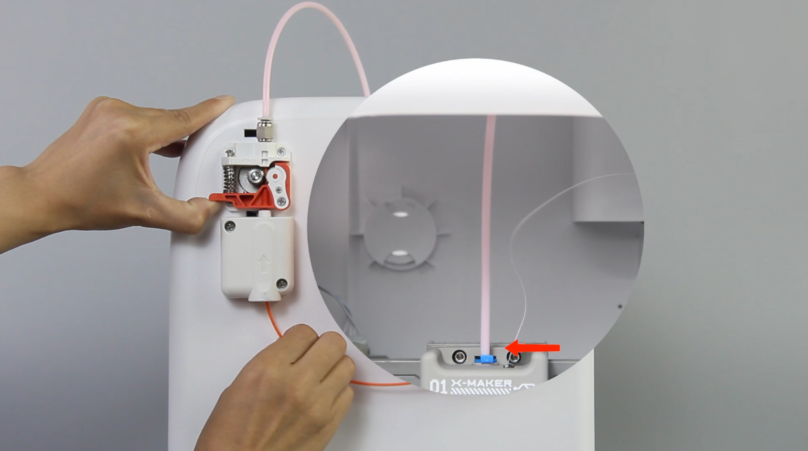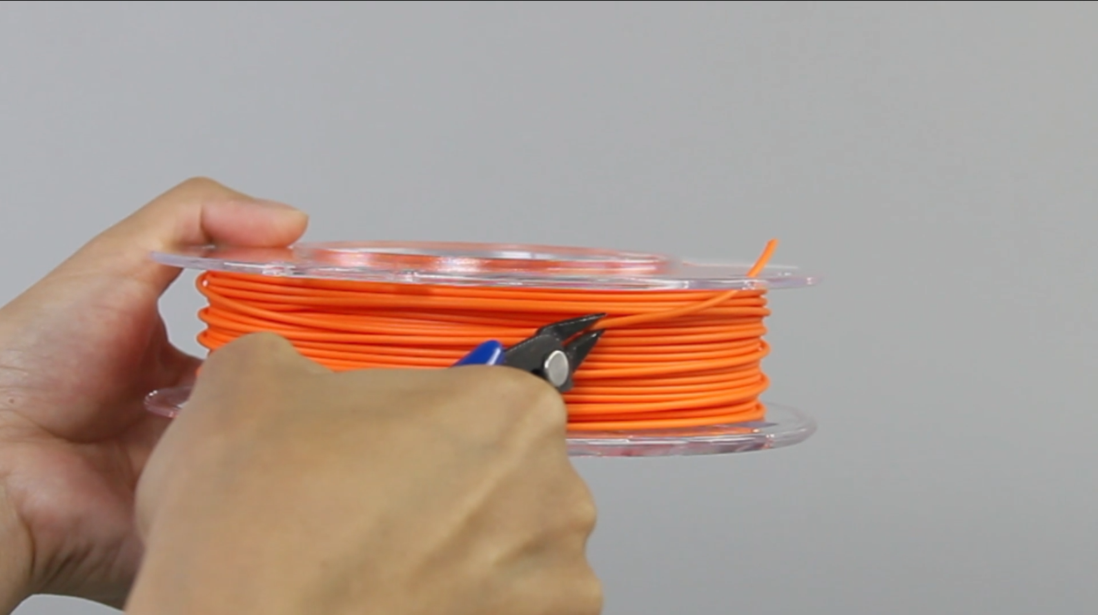 | 10. Press the extruder cover slightly and remove it. | 11. Cut the tip of the filament at an angle. | 12. Straighten the tip. |